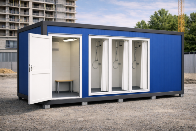 Санмодуль — це готове модульне рішення для облаштування душових, туалетних або комбінованих санітарних зон на будівельних майданчиках, виробничих територіях, складах, підприємствах, комерційних та тимчасових об’єктах. Конструкція виготовляється на міцному металевому каркасі, що забезпечує надійність, довговічність і зручність в експлуатації.
